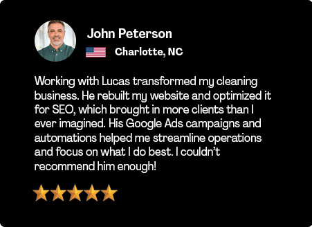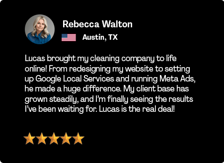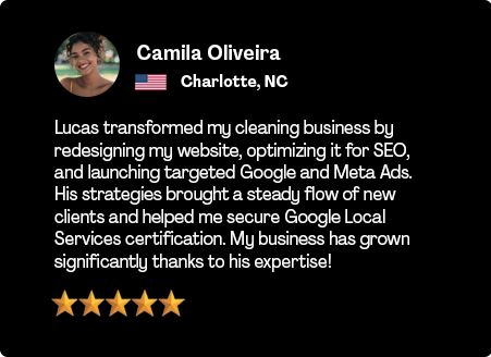 Nos últimos 3 anos, foquei em atender clientes no exterior, especialmente donos de negócios locais nos setores de Construção, Serviços de Limpeza e Clínicas de Estética. Nesse período, criei mais de 60 sites, investi mais de 100 mil dólares em anúncios e ajudei a gerar mais de 5 milhões de dólares em faturamento para essas empresas.